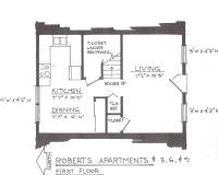Two-Story 2‑bed, 1 bath apartment, with a Living room, dining room and a full kitchen